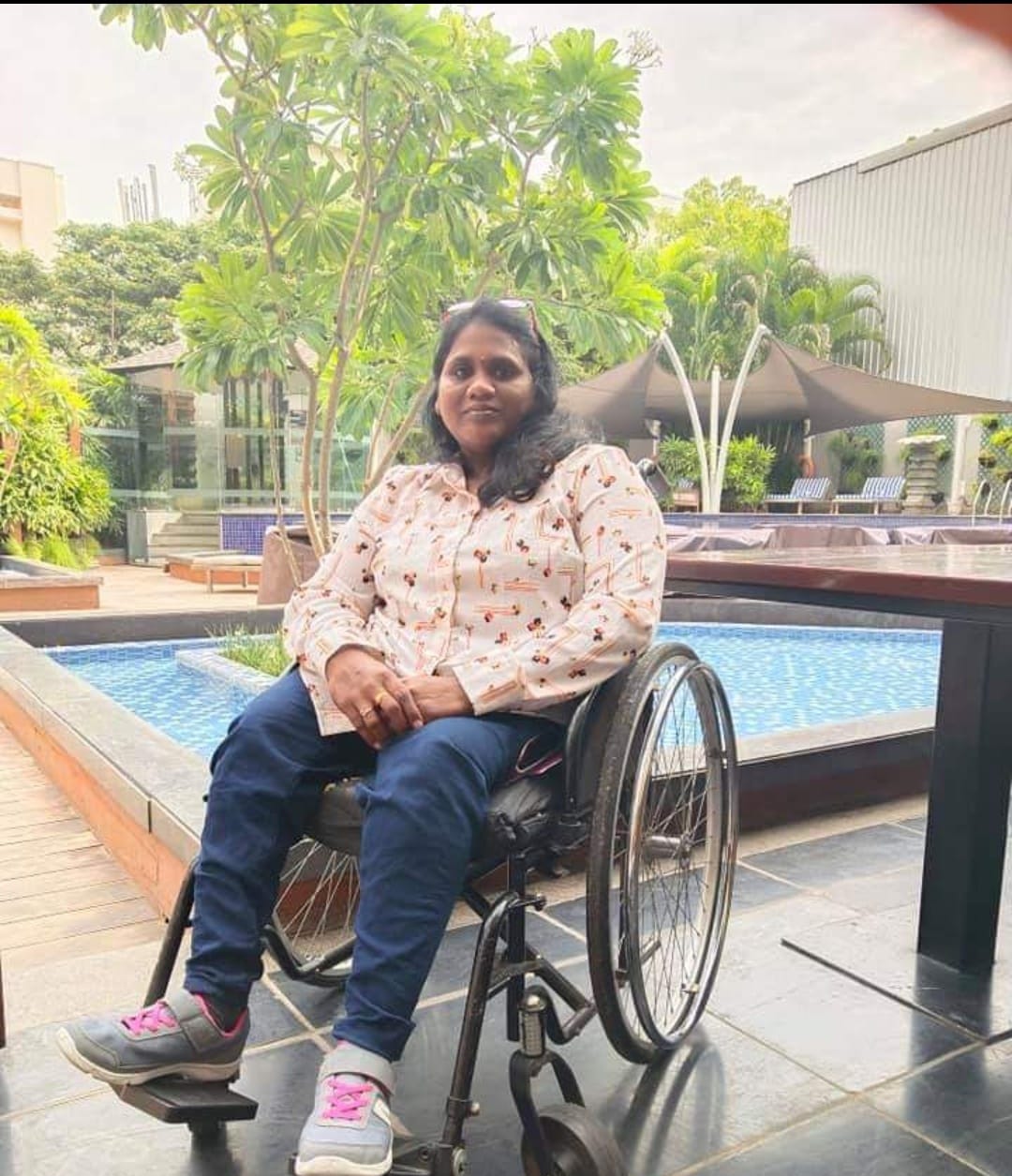 Malathi is a wheelchair user who is paralyzed below the waist. She is a zonal level wheelchair basketball player, who lost use of both her legs to Polio when she was 8 months old.